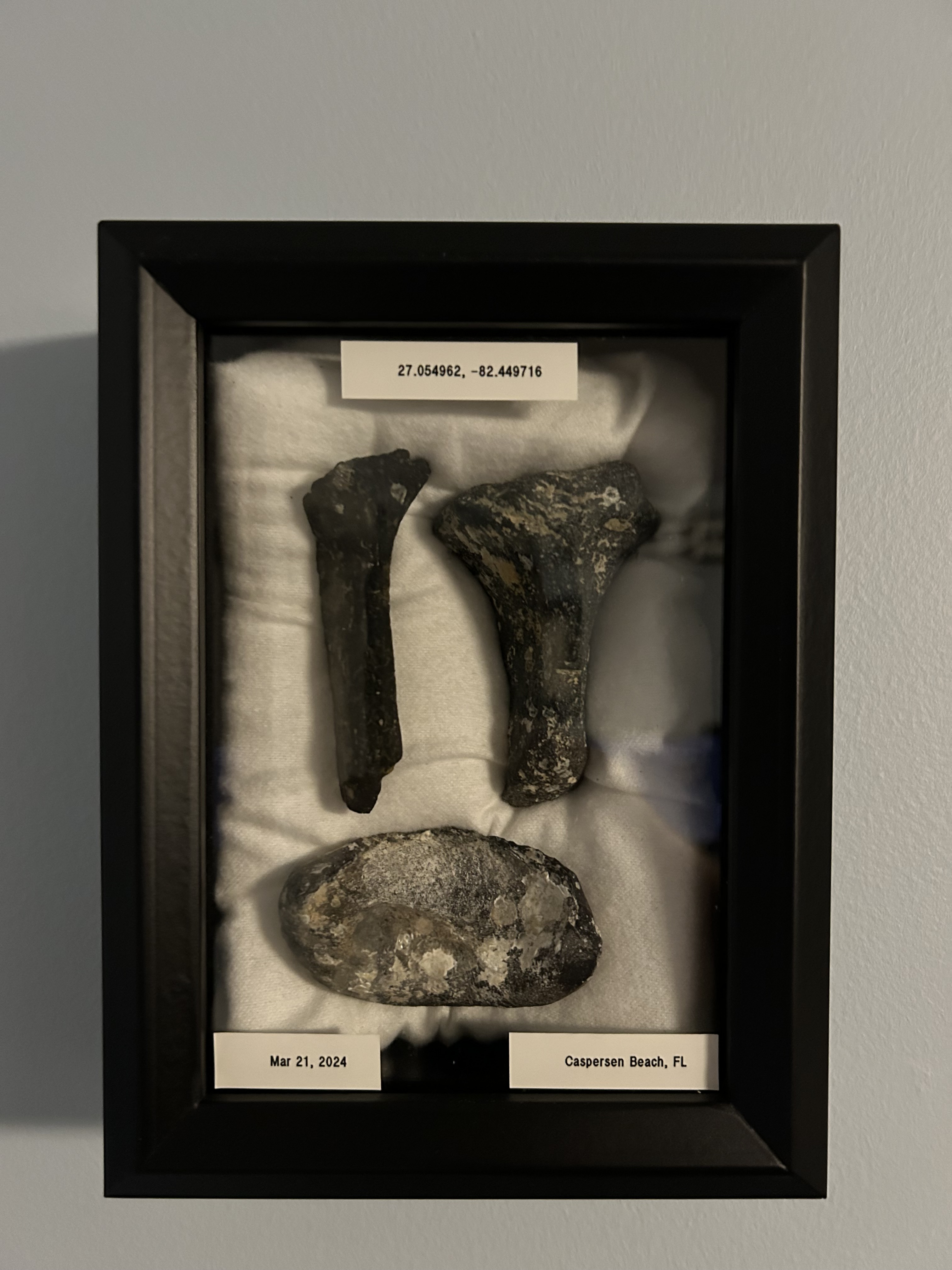I found many more fossils (ribs, appendage bones, vertebrae, etc.) than just the ones displayed here (see the gallery above). I’ll have to wait until I acquire a proper fossil cabinet before I can add them to this project post…TBD.