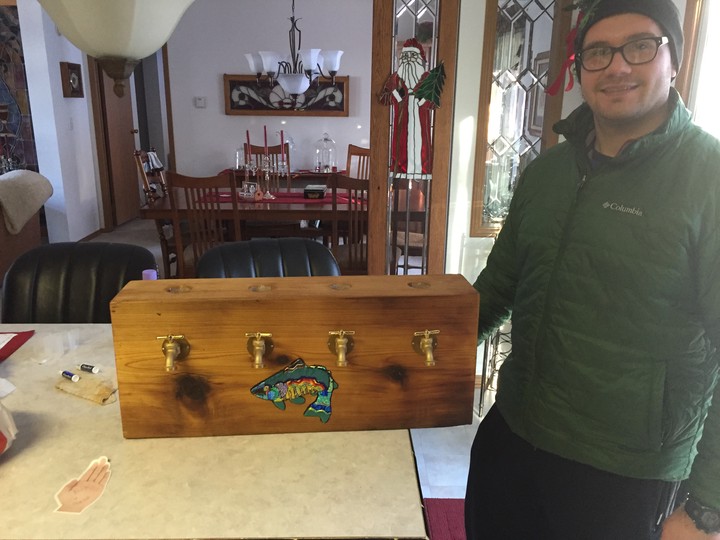 After completing this bar tap, I was so pleased with its results that I wanted to make one as a gift for my sister’s fiancee! It uses the same fabrication techniques and receptical/valve/tubing assemblies as that one so be sure to read through it for the general idea of how it works. This bar tap differs really only in cosmetics which I’ll cover below in detail.